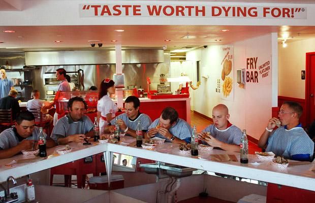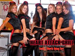 This is a rather ironic story actually. At the Las Vegas hamburger restaurant, conveniently named the "Heart Attack Grill" a man suffered an actual heart attack after eating a burger named the